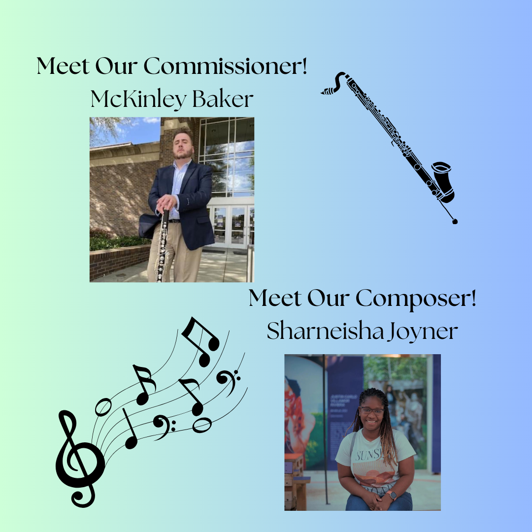McKinley Baker has commissioned Sharneisha Joyner to compose a new and exhilarating work for multiple clarinets (E-flat, B-flat, and Bass Clarinet) and electronics. There will be a B-flat clarinet substitute part for the E-flat clarinet included with the music.